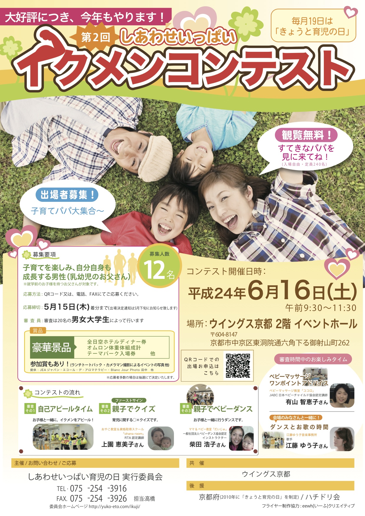元気いっぱい! 大好評!イクメンコンテスト 日時 : 2014年 11月30日(日) 10:30〜16:00 場所 : 京都平安ホテル 2F 地下鉄烏丸線今出川駅6番出口より徒歩7分