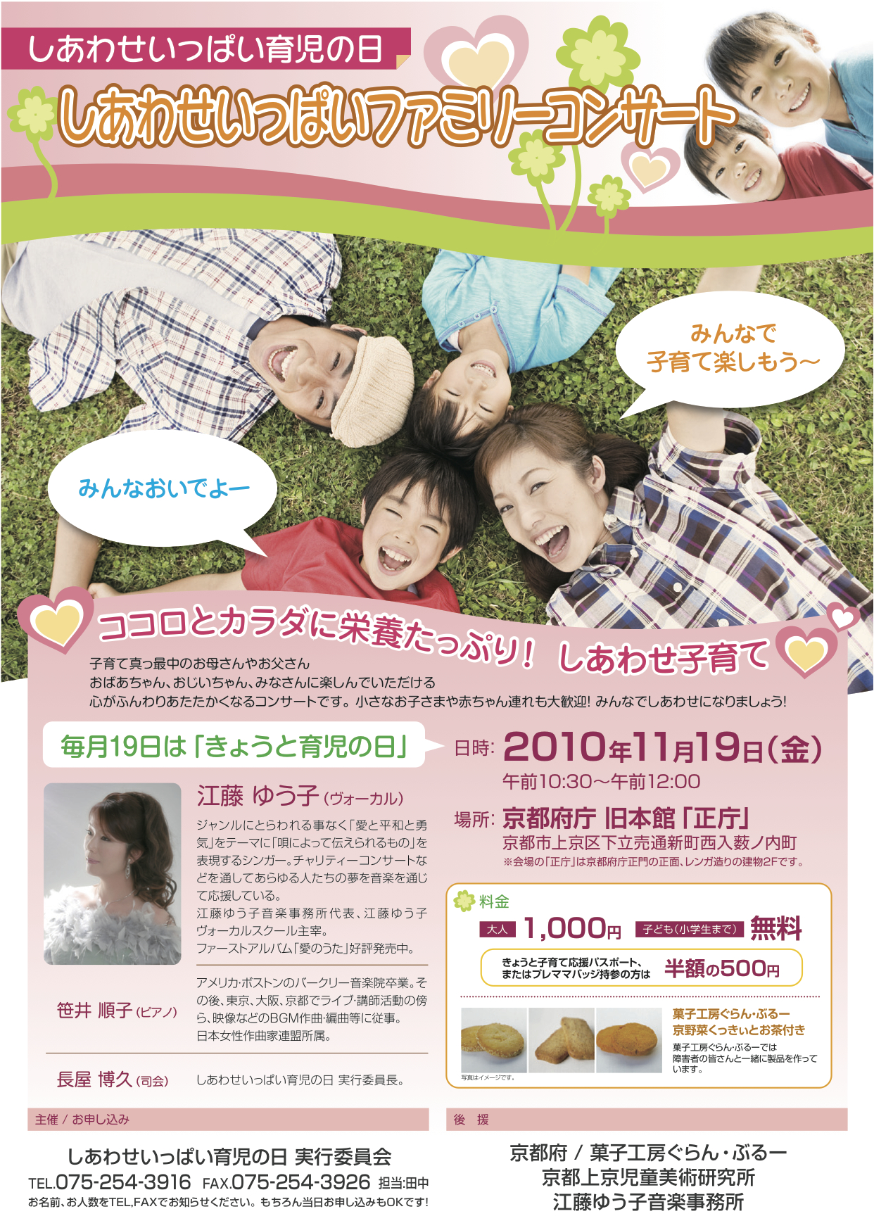 元気いっぱい!秋の大文化祭開催! 大好評!イクメンコンテスト実施! 日時 : 2013年 11月17日(日) 10:30〜15:00 場所 : 京都平安ホテル 2F 東山の間 地下鉄烏丸線今出川駅6番出口より徒歩7分