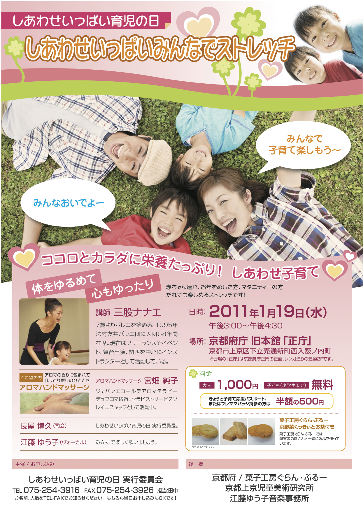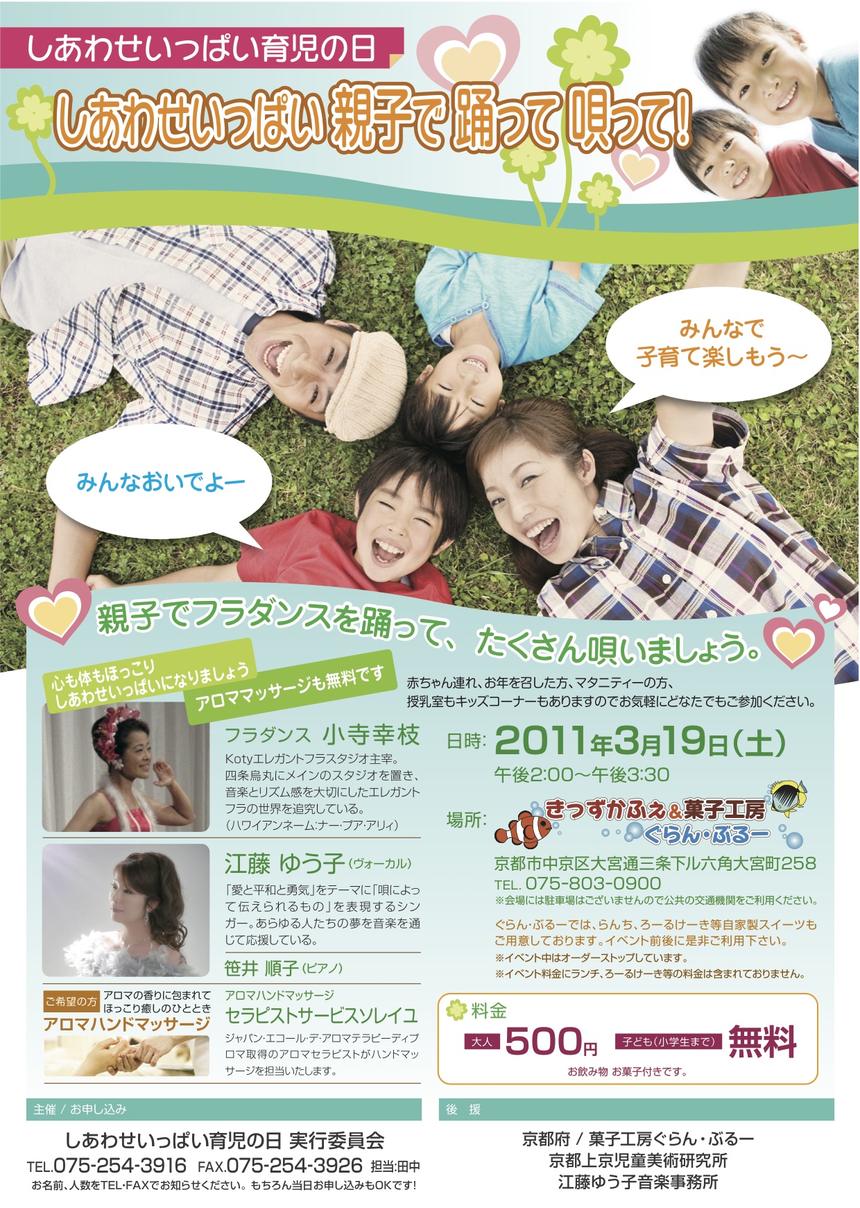 日時 : 2011年 3月19日(土) 午後2:00〜午後3:30 場所 : きっずかふぇ&菓子工房 ぐらん・ぶるー 京都市中京区大宮通三条下ル三条大宮町258